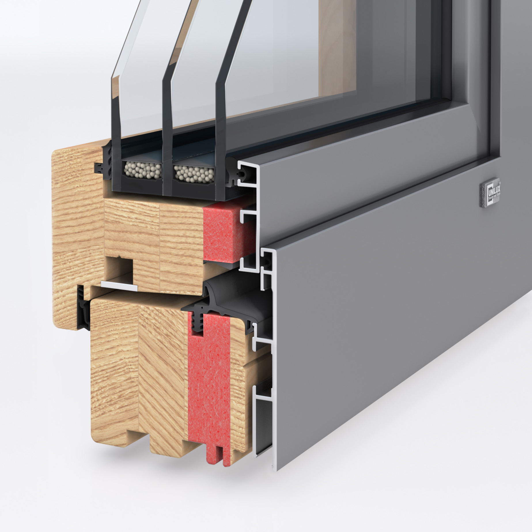 Gesundes und energieeffizientes Wohnen hat einen Namen: Passivhausstandard. Machen Sie es sich gemütlich mit unseren Holz-Aluminium-Fenstern, denn als Premiumhersteller hat Unilux das Standard Holz-Alu-Fenster zu einem Passivhausfenster weiterentwickelt. Mit einem zusätzlichen Dämmkern im Fensterflügel und –rahmen bei der Holzart Kiefer können die Holz-Alu-Fenster einen Dämmwert bis zu 0,73 W/m²K (UW) erreichen. Das spart im Winter Heizkosten und schützt außerdem im Sommer vor zu starker Hitze.