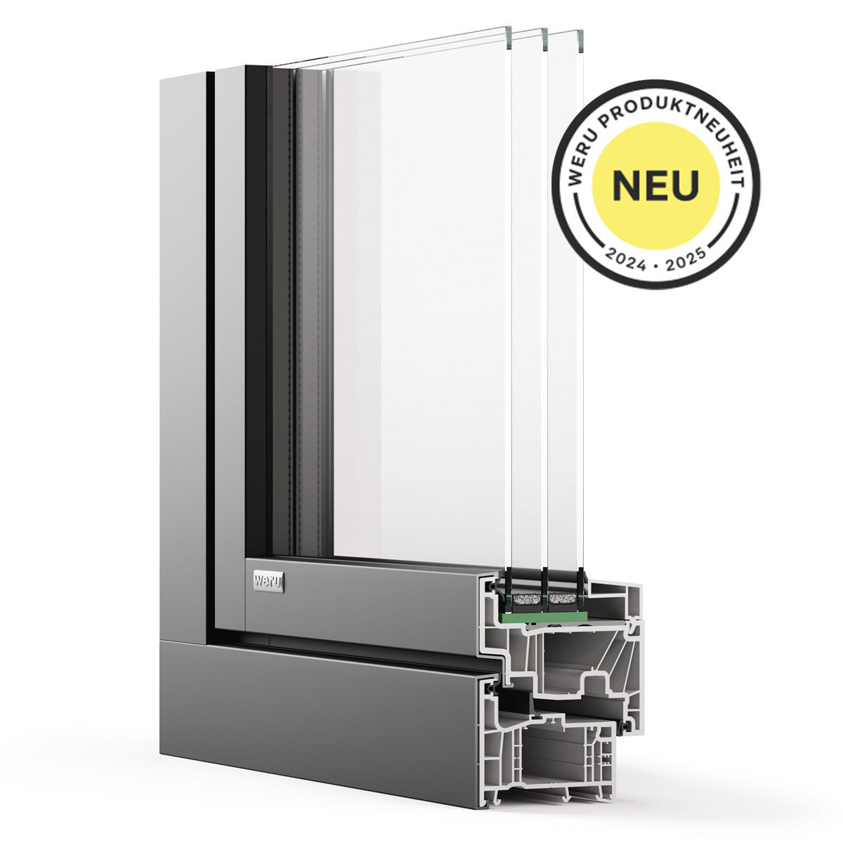Das Geheimnis dieses Fenstersystems ist der Tech-Werkstoff GFK. Diese glasfaserverstärkten Polymere (GFK) sind hier die Basis für das gesamte Profilsystem, und nicht nur für den Profilkern. Durch den GFK Werkstoff sind leichtere und noch stabilere Fenster realisierbar, die vorher nur mit einer Stahlverstärkung umsetzbar waren.