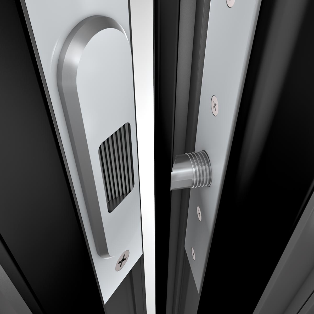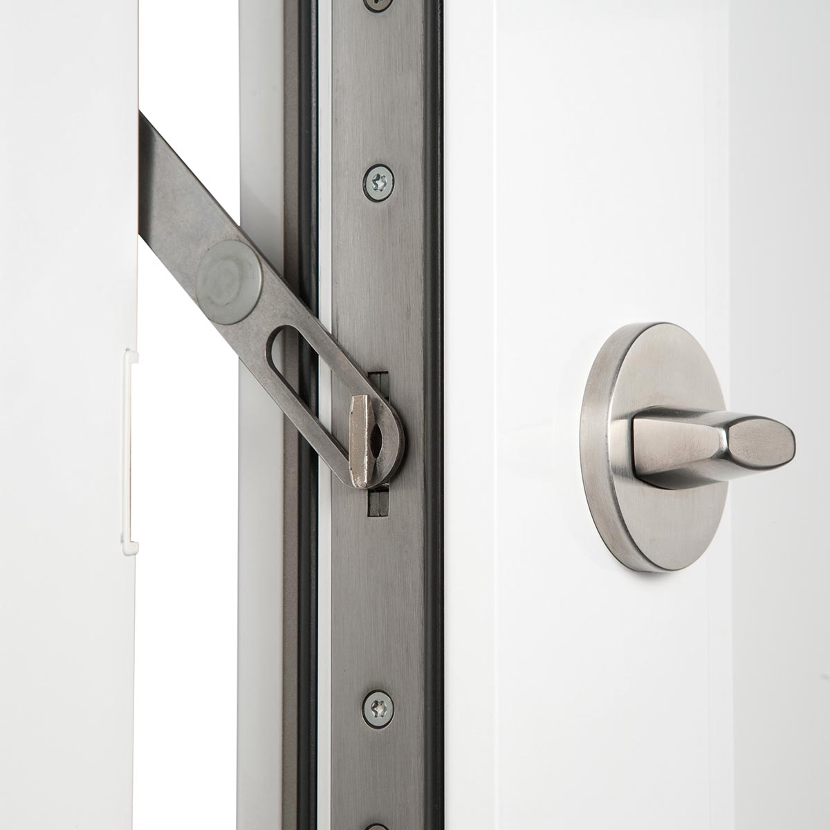 Damit Sie sicher von innen hinausschauen können öffnet sich die TwinLock-Türfangeinrichtung lediglich einen Spalt breit. Die Schlossteile sind im Türprofil versteckt.
